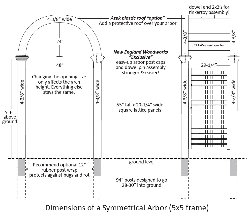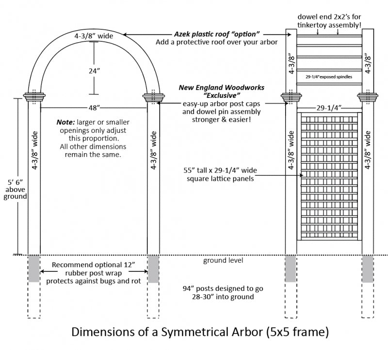 Available in various sizes, each piece combines strength with timeless beauty. Arbors arrive pre-sanded and ready for painting or staining. An optional waterproof hybrid cellular vinyl roof is designed to match the wood finish and extend product life.