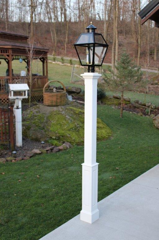 Finial Style Western Red Cedar lantern post with 30" Fluted Base (shown) or Raised Panel Base